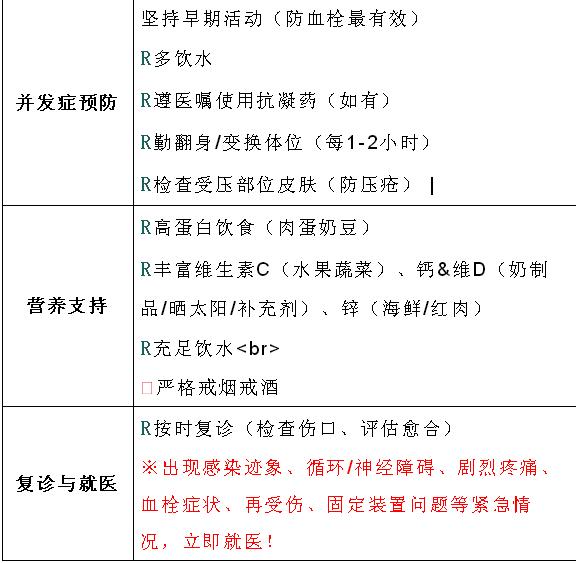 骨折術后拆線前的階段(通常為術后7-14天)是傷口愈合和早期穩定的關鍵時期,特別是未拆線出院的患者做好自我防護至關重要,能有效預防感染、促進愈合、避免并發癥。以下是詳細的自我防護清單: