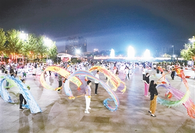 “明月幾時有?把酒問青天。不知天上宮闕,今夕是何年……”9月16日晚,在紅楓廣場東側的舞臺上,一群小朋友身穿傳統服飾,手持書卷,深情朗誦蘇軾的《水調歌頭·明月幾時有》。當晚的沙澧河風光帶璀璨奪目,正在進行的秋燈會吸引了數萬名游客。