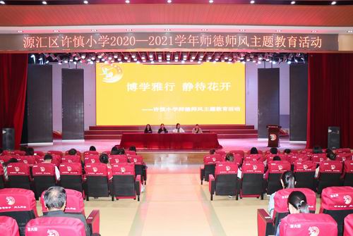 9月21日下午,源匯區許慎小學召開師德師風主題教育大會,圍繞本學年源匯區教育局開展的師德師風建設活動,許慎小學確立了本學年以“博學雅行,靜待花開”為主題的師德師風教育活動。