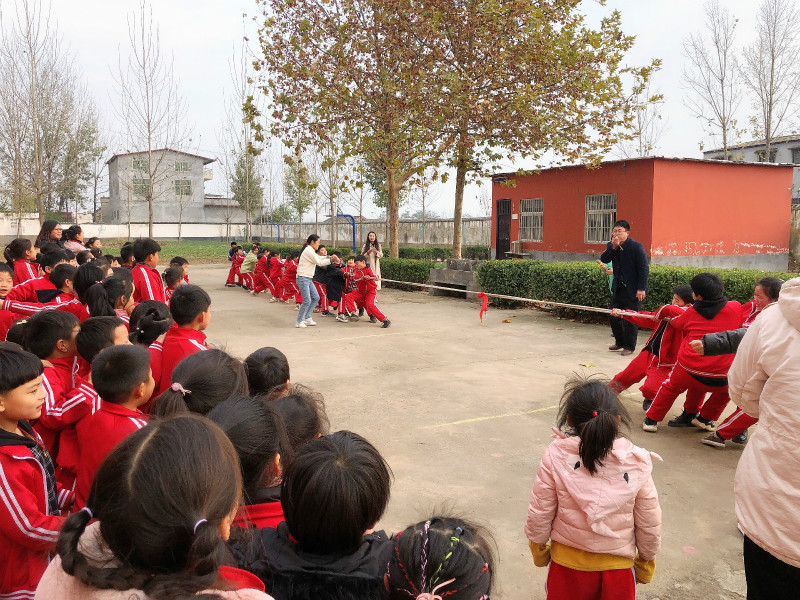 召陵區萬金鎮栗門張小學隆重舉行冬季拔河比賽