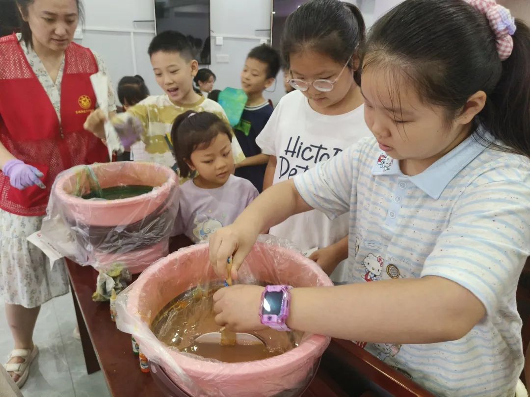 在非遺漆扇制作環節,小朋友們在工作人員的耐心指導下,親手體驗漆扇制作。大家充分發揮想象力,繪制出色彩斑斕的扇面,完成了屬于自己的特色漆扇作品,在鍛煉動手能力的同時,進一步領略了非遺文化的獨特魅力。