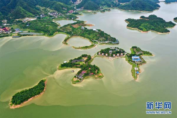 這是7月2日拍攝的福建省古田縣翠屏湖(無人機(jī)照片)。 位于福建省古田縣境內(nèi)的翠屏湖是福建省最大的人工湖,水域面積達(dá)37.1平方公里,湖中分布著眾多島嶼,素有“福建千島湖”之美譽(yù)。陣雨過后,翠屏湖煙波浩渺,美不勝收。 新華社記者 姜克紅 攝