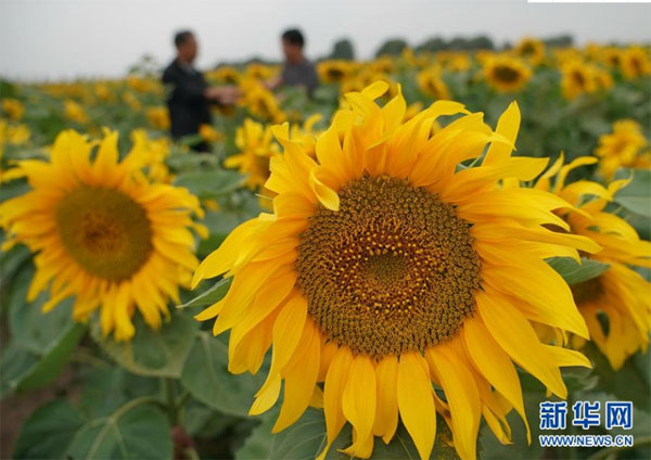 8月12日,在尚義縣三工地鎮有德元村,農民在田間管護旱作油葵。 近年來,地處壩上地區的河北省尚義縣大力實施地下水超采綜合治理,積極探索旱作雨養種植技術,發展馬鈴薯、莜麥和油葵等旱地農作物,促進生態環境恢復。據介紹,該縣2019年以來,先后關停灌溉用井1200余眼,旱地改草23萬畝,水澆地改旱地11萬畝。 新華社記者 楊世堯 攝