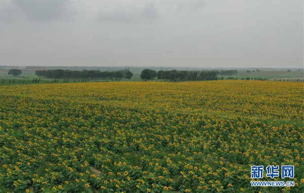 8月12日在尚義縣三工地鎮有德元村拍攝的旱作油葵(無人機照片)。 近年來,地處壩上地區的河北省尚義縣大力實施地下水超采綜合治理,積極探索旱作雨養種植技術,發展馬鈴薯、莜麥和油葵等旱地農作物,促進生態環境恢復。據介紹,該縣2019年以來,先后關停灌溉用井1200余眼,旱地改草23萬畝,水澆地改旱地11萬畝。 新華社記者 楊世堯 攝
