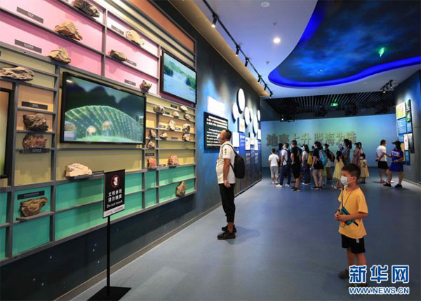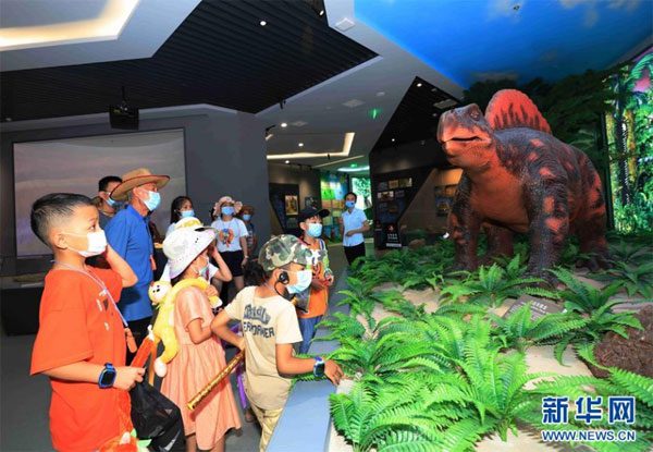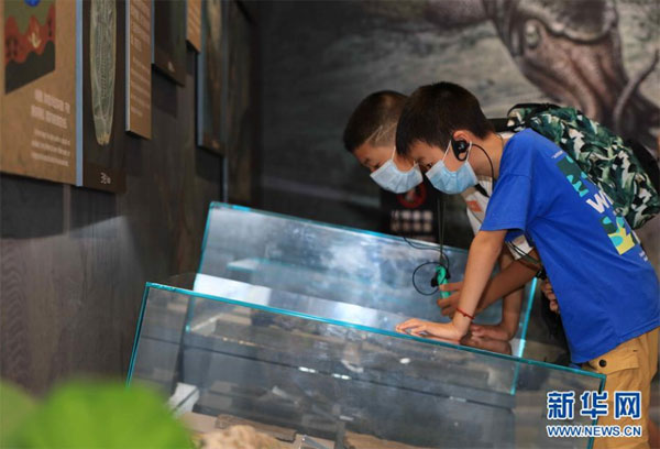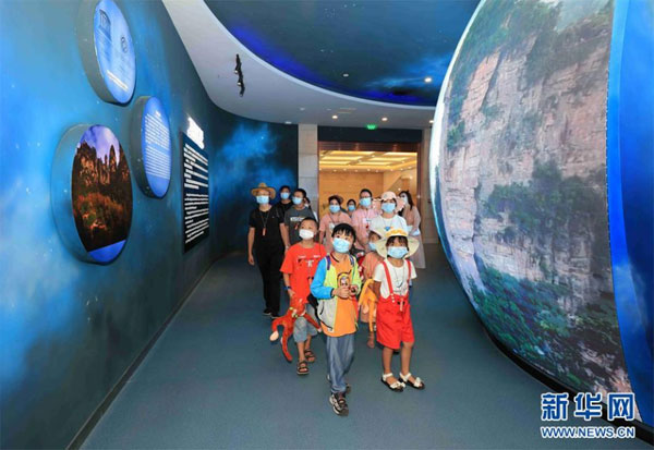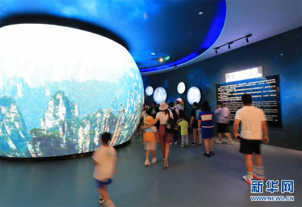 8月24日,游人在湖南張家界市武陵源區世界地質公園博物館參觀。 暑假期間,張家界市武陵源區推出張家界地貌世界自然遺產游、地質科普親子游等多條暑期旅游線路,吸引游客前來參觀游玩,感受大自然的神奇魅力。 新華社發(吳勇兵 攝)
