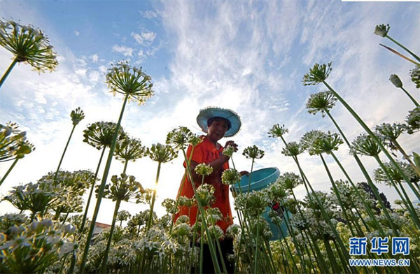 8月29日,山東省淄博市沂源縣悅莊鎮(zhèn)黃山子村的農(nóng)民在田間采摘韭菜花。 初秋時(shí)節(jié),山東省淄博市沂源縣農(nóng)民種植的萬(wàn)畝韭菜迎來(lái)盛花期,當(dāng)?shù)剞r(nóng)民加緊采摘韭菜花銷(xiāo)往各地。近年來(lái),無(wú)公害韭菜種植成為當(dāng)?shù)剞r(nóng)民增收致富的特色產(chǎn)業(yè)之一。 新華社發(fā)(趙東山 攝)