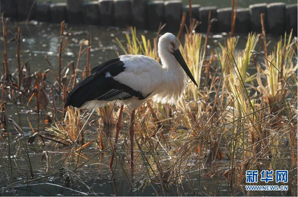 兩只受傷后被送來(lái)醫(yī)治的東方白鸛享受冬日暖陽(yáng)。受益于公眾環(huán)保意識(shí)的提升,一些意外受傷的候被人們發(fā)現(xiàn)后