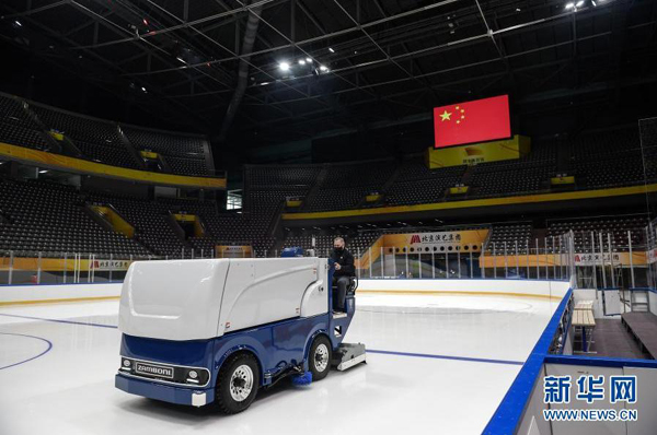 1月28日,北京2022年冬奧會及冬殘奧會冰球比賽場館國家體育館完成首次制冰工作,