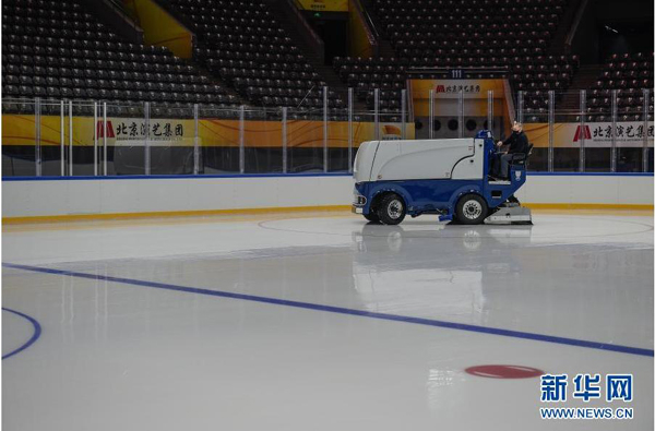 一塊在冰球訓練館用于賽前訓練熱身。這是主制冰師、制冰專家