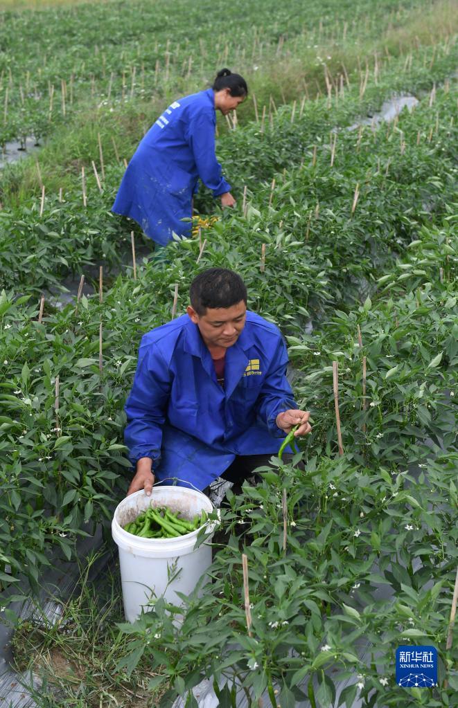 11月4日,在廣西田東縣平馬鎮百林村,村民在采摘辣椒準備上市。