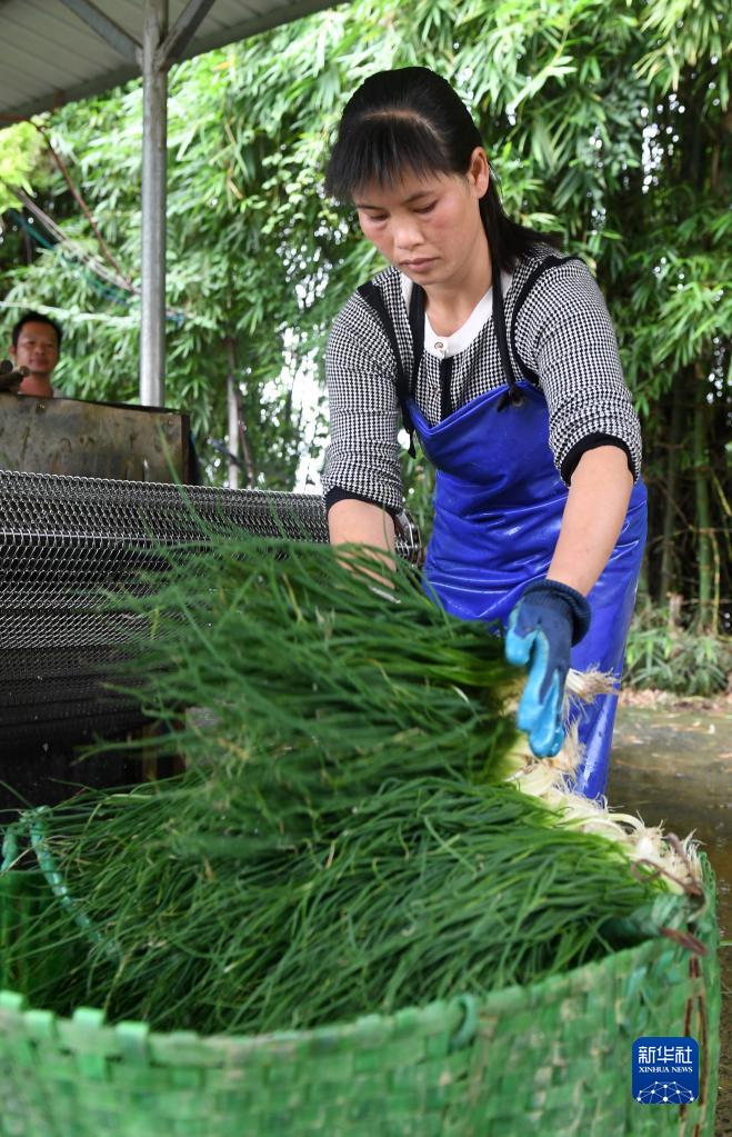 11月4日,在廣西田東縣祥周鎮中平村,當地村民在整理香蔥準備上市。
