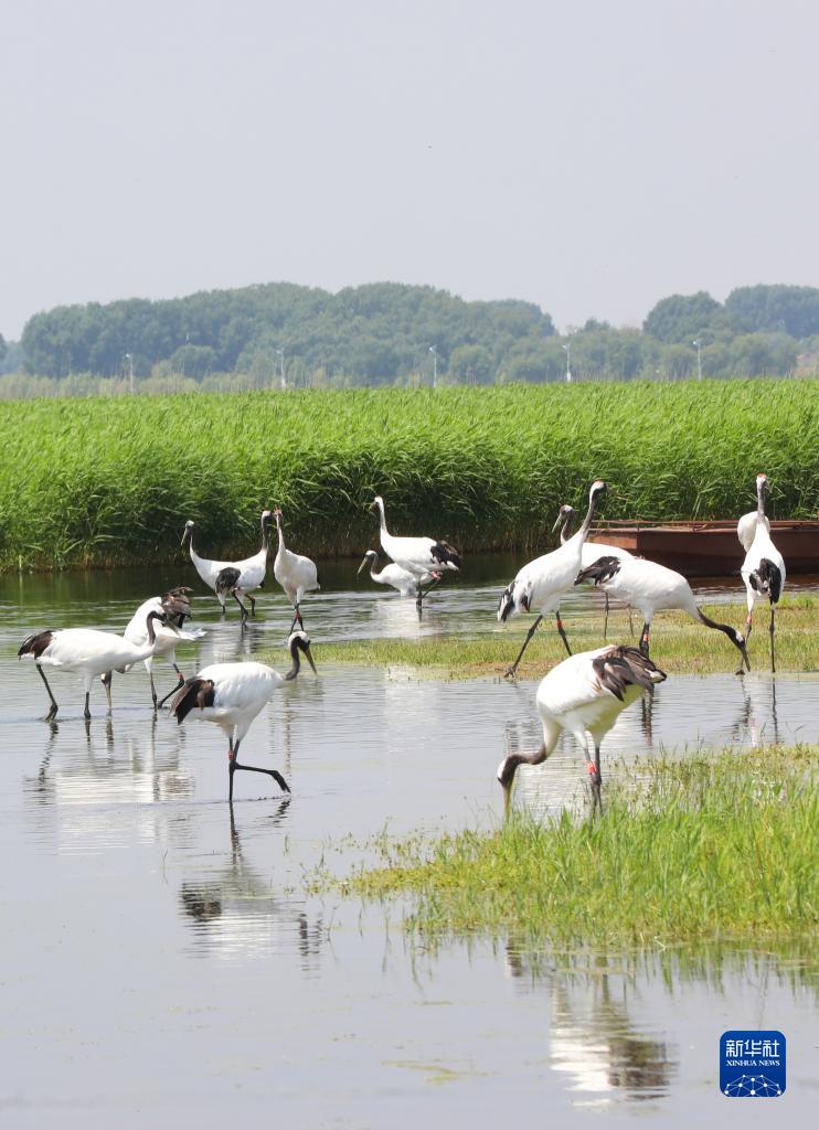 這是黑龍江扎龍國家級自然保護區的丹頂鶴(2022年6月15日攝)。 新華社發(宋燕軍 攝)