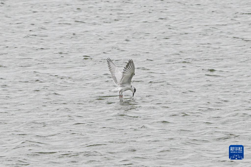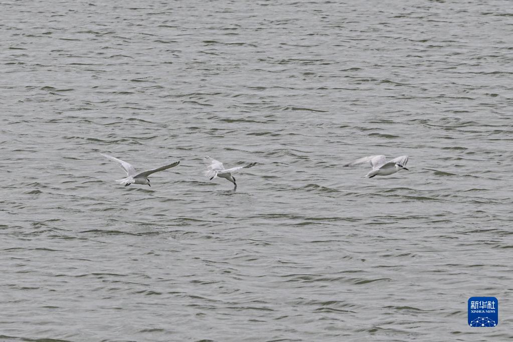 11月12日,須浮鷗在海口市美蘭區一處濕地覓食。