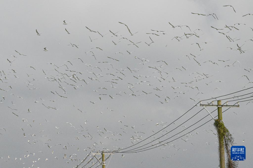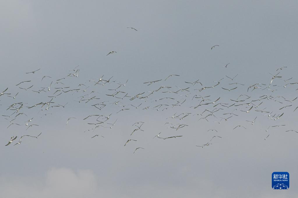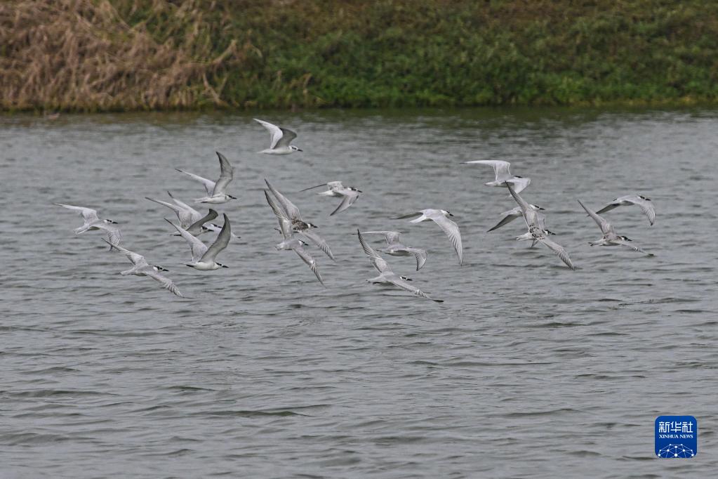 近期,不少候鳥進入海南越冬。在首批“國際濕地城市”海口市的美蘭區一處濕地,大批前來越冬的須浮鷗呈現“萬鳥翔集”景象。鳥群時而群飛,時而整齊棲息,頗為壯觀。