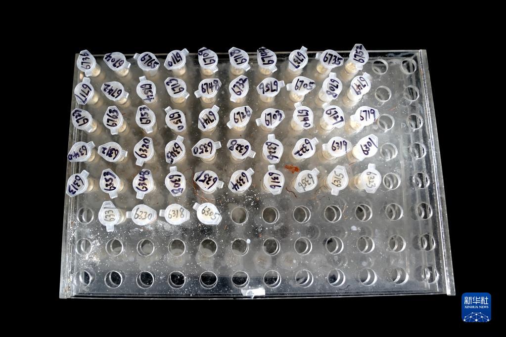 11月16日在中國科學院分子植物科學卓越創新中心實驗室拍攝的玉米籽粒粉末樣品。