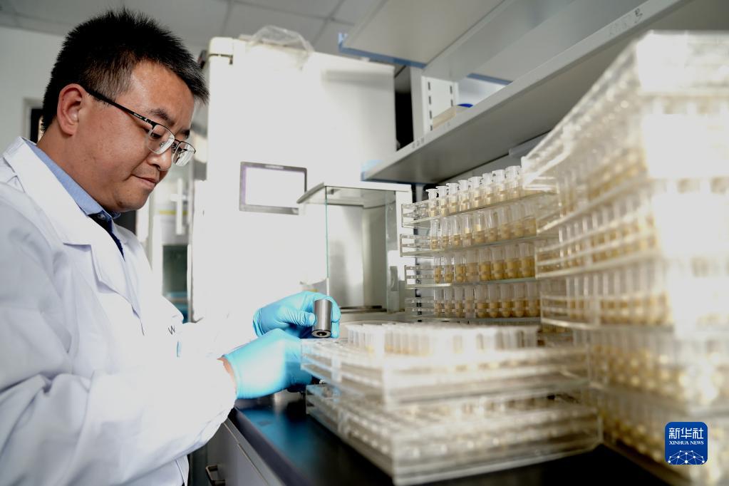 11月16日,中國科學院分子植物科學卓越創新中心副研究員王海海在進行玉米蛋白測定前的包樣工作。