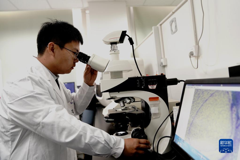 11月16日,中國科學院分子植物科學卓越創新中心博士后黃永財用顯微鏡觀察玉米胚乳細胞。