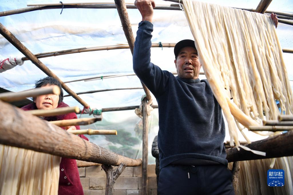 初冬時節,氣溫驟降,正是傳統手工粉條加工的好時節。在河北省遷安市,農民們忙著加工晾曬粉條供應市場。近年來,遷安市著力構建“一村一品”產業發展格局,鼓勵有條件的村莊和農戶利用冬閑時節從事粉條加工產業,不斷開拓省內外市場,有效拓寬群眾增收途徑。